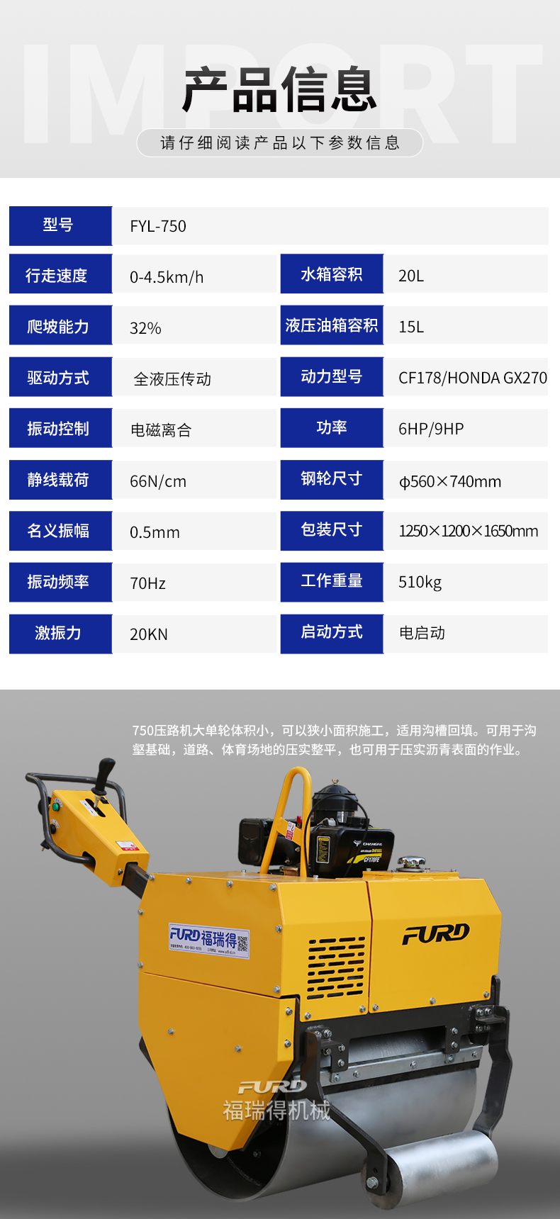 FYL-750  液壓手扶式單輪壓路機(jī)